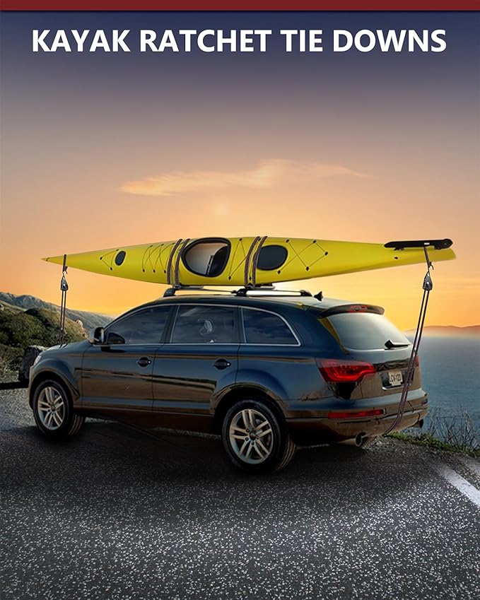 - Built to Last: The kayak straps are durable, tear-resistant, and rust-proof with a weight load capacity of up to 150 lbs per ratchet and 1200 lbs per 8-pack