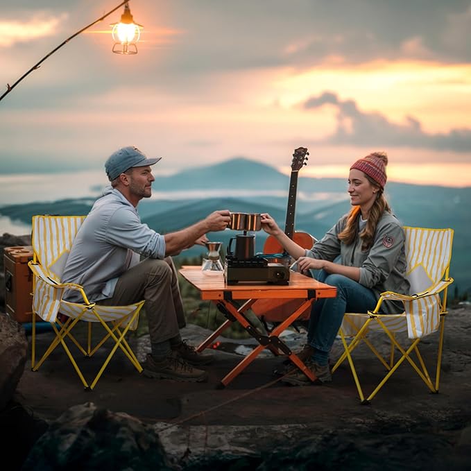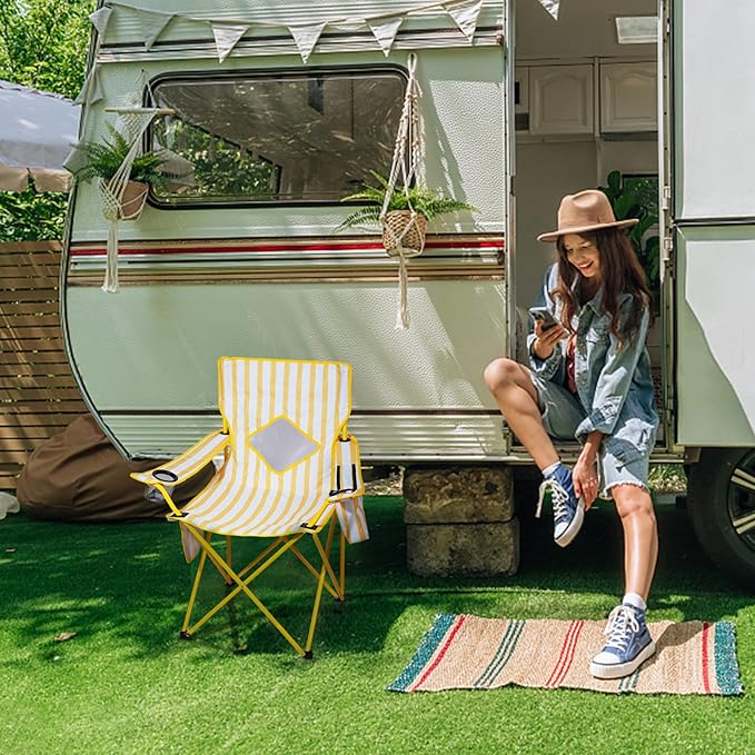 Nazhura 2 Pack Folding Camping Chair with Cooler Pouch, Mesh Backrest and Cup Holder Pocket (Yellow, 2 Pack)