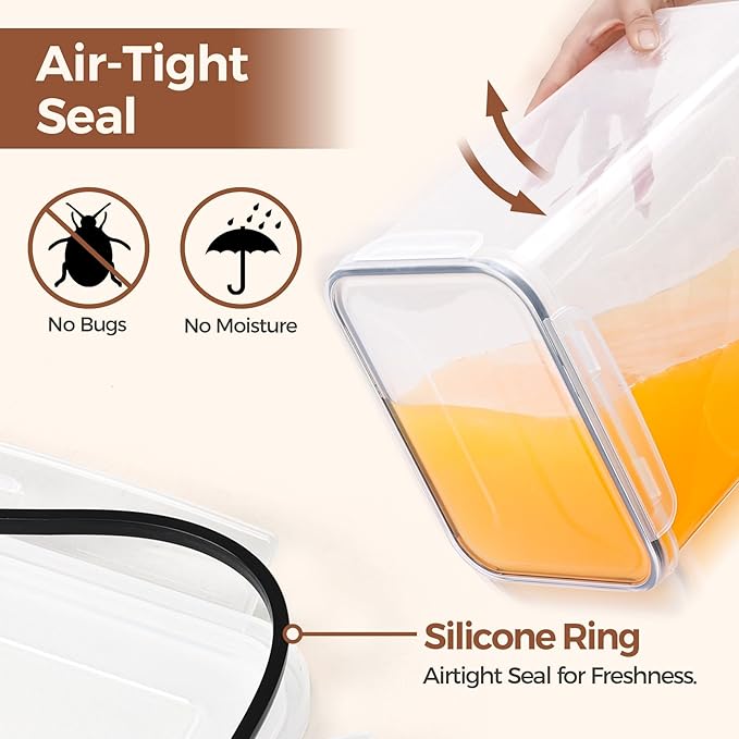 - Airtight – Food Stays Fresh: Four-sided clip-on lids with a silicone gasket create a strong, airtight seal that locks out moisture and air. The rice storage container with airtight lid keeps your rice fresh, dry, and protected from ants, pests, and humidity
