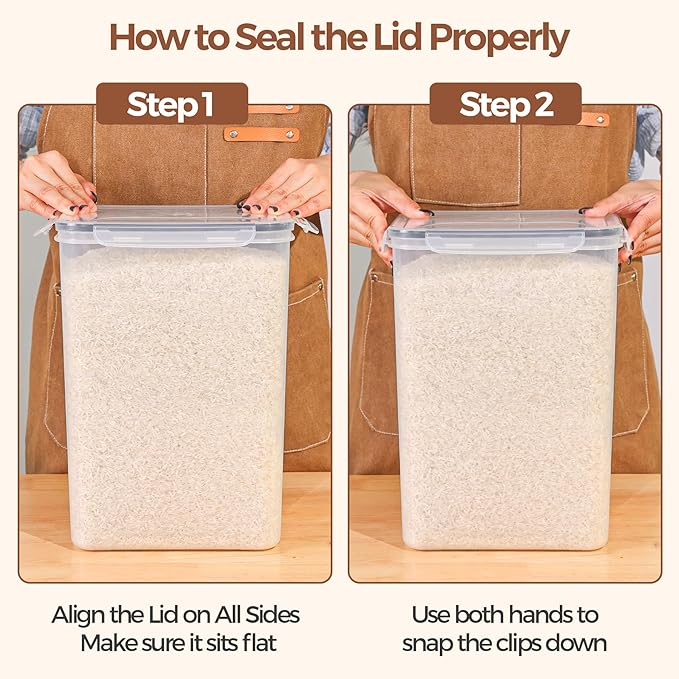 - Big Capacity for Rice Storage: This set includes 2 large food storage containers that comfortably hold 20–25 lbs of rice, and up to 36 lbs at full capacity. Great for bulk items like flour or pet kibble, ideal for long-term storage