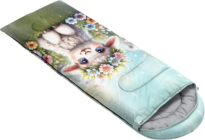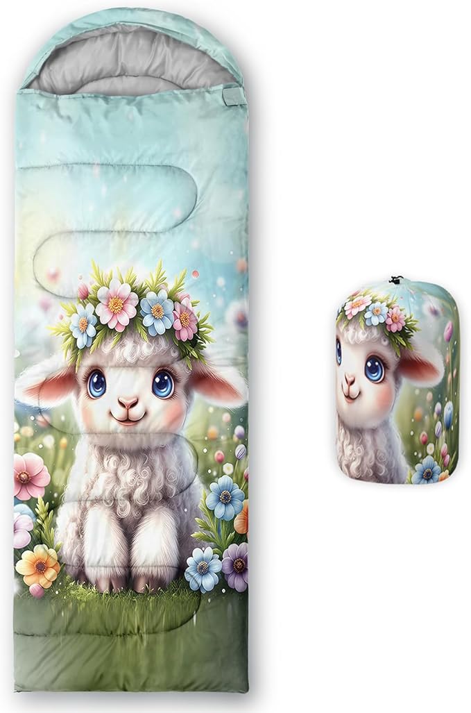 - 【Design】This teal sleeping bag is printed with a sheep surrounded by flowers.It is cute and colorful.It is a great equipment for children's outdoor activities and can also add a unique touch to your camping.