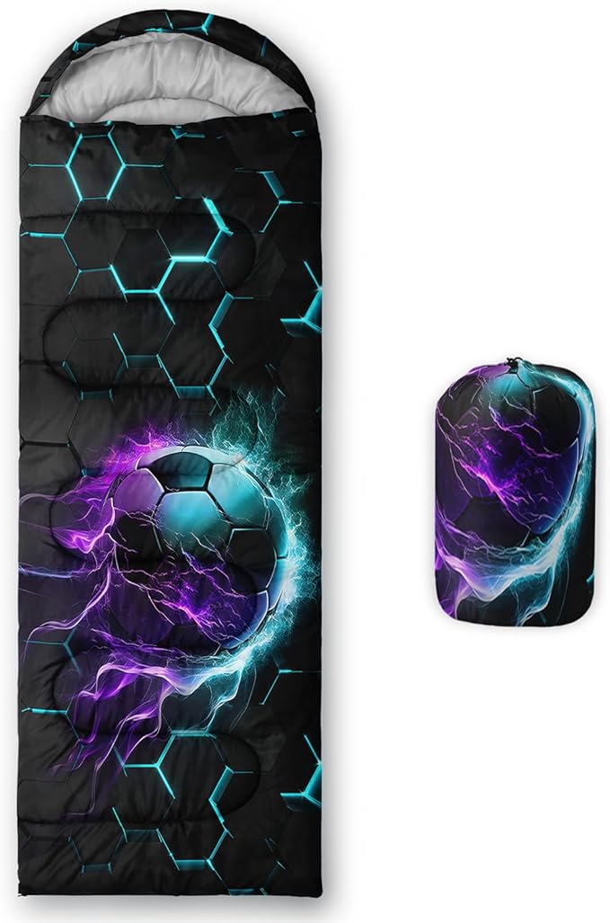 - 【Design】Whether you are interested in geometric shapes or ball sports,this unique sleeping bag can satisfy you.The black honeycomb background with a football is novel and fashionable,perfect for children who love sports.