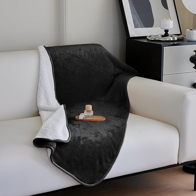 gogobunny Dog Blanket, Waterproof Reversible Sherpa Fleece Throw Blanket, Furniture Cover for Bed, Couch, Sofa Protection from Liquid Pee and Pet Fur of Puppy, Cat (Black, 30x70 inches)