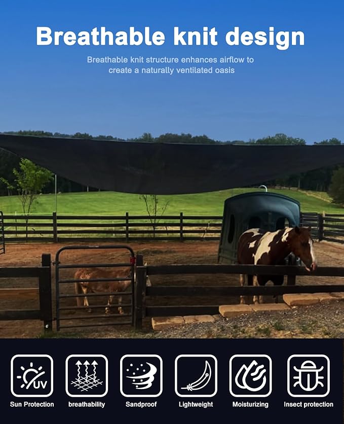 - 90% Sun Block & UV Protection??- Reduces harmful UV exposure while maintaining visibility through light-diffusing technology??Minimizes solar heat transfer to prevent scorching damage??Breathable knit structure??enhances airflow to create a naturally ventilated oasis that keeps you cool without compromising privacy??Garden shade cloth is ideal for gardens, patios, greenhouses, and other outdoor spaces