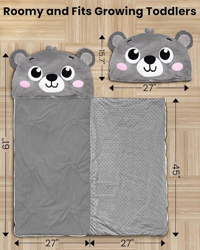 - Cozy & Warm: Made from soft flannel with a cozy, warm minky dot lining, this nap mat feels gentle on skin. The fluffy built-in pillow adds comfort—perfect for preschool, overnight, and camping