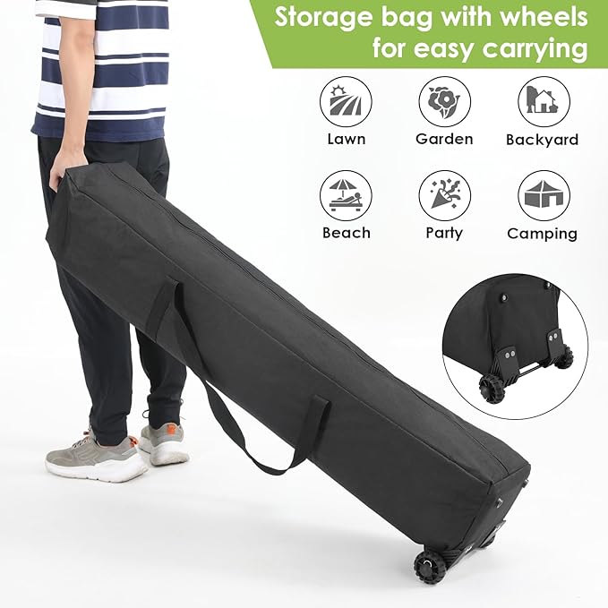 - EASY TO CARRYING: Heavy duty canopy is folded to a size of 46??× 8.7??× 8.7?? weighs 45 LBS. Tailgate tent has a wheeled bag ( wheels are not removable), easy to storage and carrying, suitable for outdoor activities