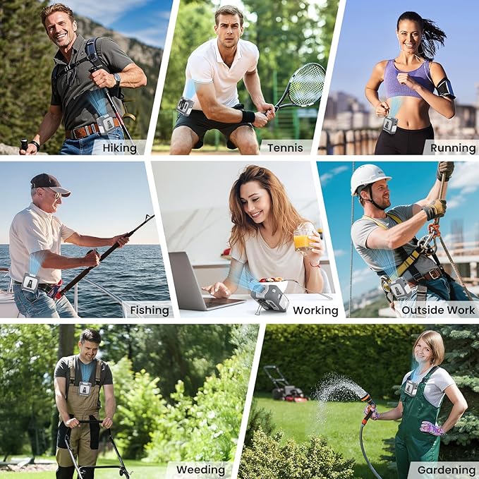 - 【Personal Waist Fan】The portable waist clip fan can be easily clipped onto the belt,hanging on the neck,or placed on the table,cooling your summer in anywhere you go,light breeze or strong wind can choose freely,no longer sweat and upset when going out in hot days.It is cooling waist fan,mini desk fan,and neck fans.