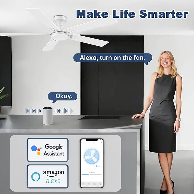 - 【APP/Remote/Voice Control】Our Smart Ceiling Fans with Lights come with remote control,APP control and wifi voice control via Alexa and google assistant, allowing you to effortlessly adjust the fan speed, dim the lights, and integrates into your smart home simply,truly making your living space more intelligent and convenient.