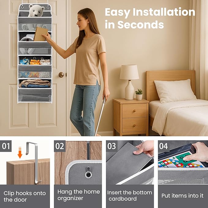 - ▶【Multifunctional Door Storage】: Multifunctional hanging door organizer is perfect for expanding storage space. Suitable for closet organizers and storage, bathroom organizers and storage, toy storage organizer, placed in children's room, storage room, office, laundry room, bedroom, bathroom, living room, storage room, dormitory, nursery and other areas where toys, diapers, wipes, baby towels, socks and other items need to be stored. Designed to make rational use of space.