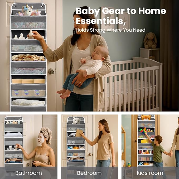 - ▶【Multifunctional Door Storage】: Multifunctional hanging door organizer is perfect for expanding storage space. Suitable for closet organizers and storage, bathroom organizers and storage, toy storage organizer, placed in children's room, storage room, office, laundry room, bedroom, bathroom, living room, storage room, dormitory, nursery and other areas where toys, diapers, wipes, baby towels, socks and other items need to be stored. Designed to make rational use of space.