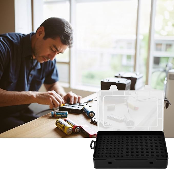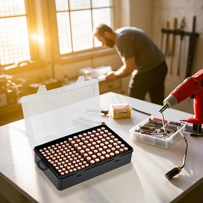 - Battery storage box is a nice goods:Small battery box is practical for your dad/ husband/ boyfriend/ friend who can take battery box with them on the go and easily put the battery storage box in drawers, storage racks and Place them on desks, kitchens or garages, warehouses, etc. So they can change aa battery 12 pack at any time.