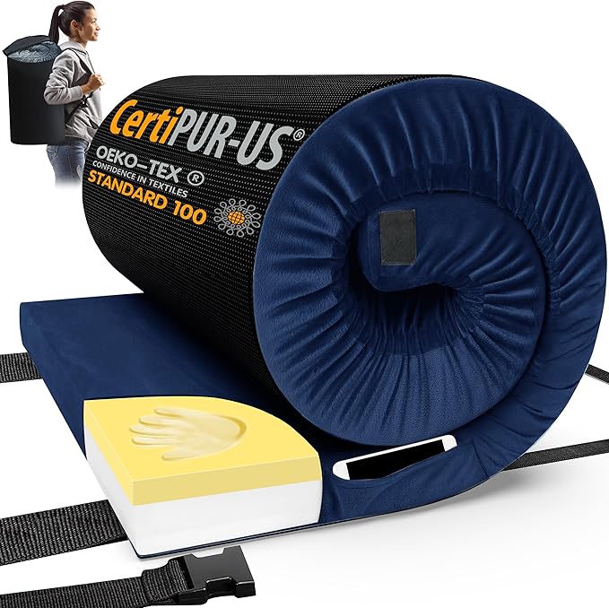 CYMULA CertiPUR-US Memory Foam Camping Mattress Pad, Portable Foam Sleeping Pad for Camping, Roll up Sleeping Mat for Adults Guest Floor Bed for Sleepover, Car, Tent SUV Cot Mattress