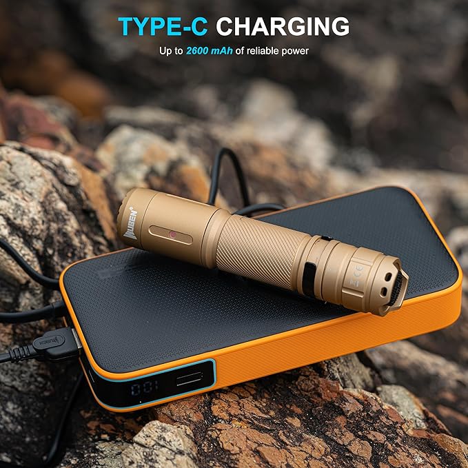 WUBEN C3 Flashlight 1200 High Lumens Rechargeable Flashlights 6 Modes Super Bright IP68 LED Tactical Flashlight for Camping, Home, Emergenc, Inspection, Repair, Tool Gifts for Men(Khaki)
