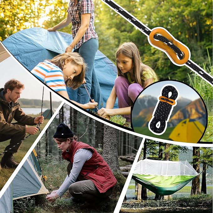 - Fast & Easy to use: Every guy line features an aluminum rope tensioner—allowing for easy and sturdy adjustments at the exact length you need, then unlock to loosen. No knots, no fuss. Quickly set up and take down your tent rope.