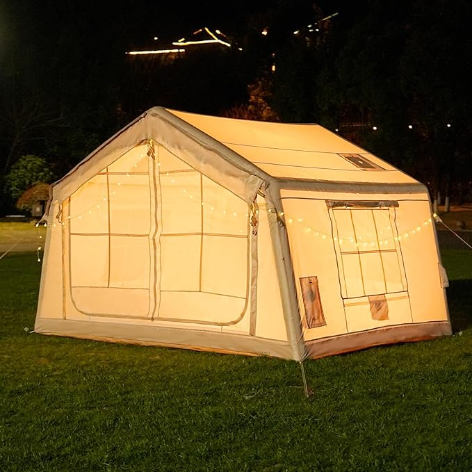 - 【Year-Round Enjoyment】 The ABORON inflatable tent offers a stove jack for winter warmth, an AC port for summer cooling, and a skylight for a magical stargazing experience all year long