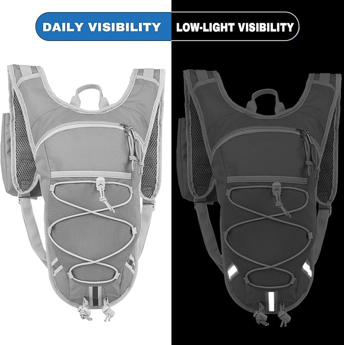 - 【Lightweight & Comfortable for Long Runs】 This 2L hydration backpack features a minimalist design with a main compartment for the water bladder, offering a lightweight fit that reduces strain during running, cycling, hiking, and outdoor workouts