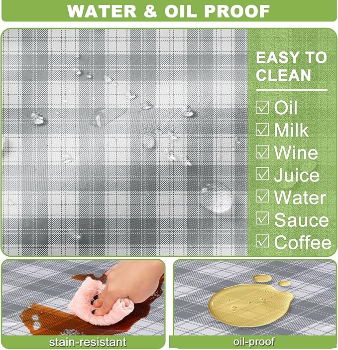 - Oil and Water Proof: Crafted from high-quality polyester, ensures no spills or stains soak in and easy to clean - just wipe it down with a damp cloth, and it's good as new. The material is also colorfast, wrinkle resistant and wear resistant, and whether used indoors or outdoors, this tablecloth will ensure that your table will still look vibrant after multiple uses