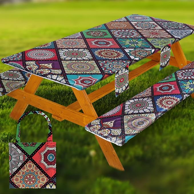- Fitted Size: The 3 pcs set includes 1 x table cover (72"x 30"), 2 x bench cover (72"x 12"), suitable for standard 6FT Table and Bench. For added convenience, it comes with a portable storage bag, so you can easily fold it and carry it with you wherever you go, making it ideal for on-the-go outdoor adventures