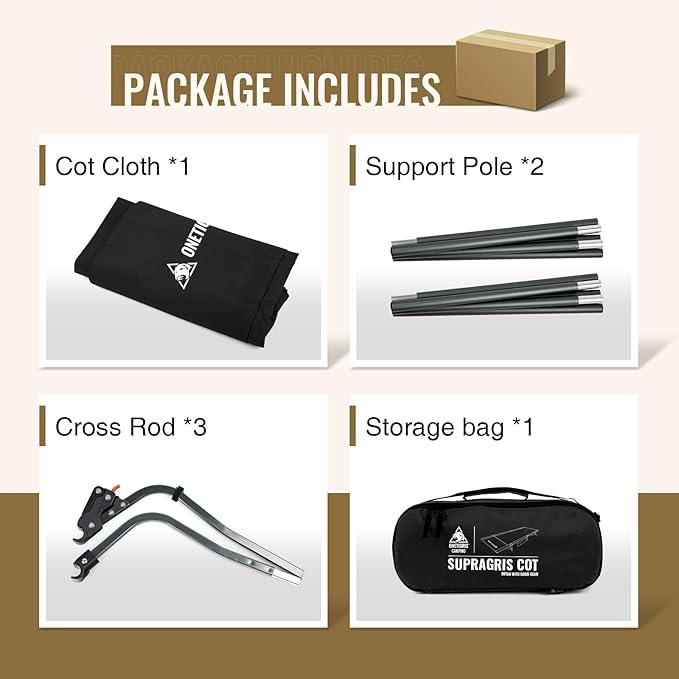 ONETIGRIS SUPRAGRIS Camping Cot, Support Up to 400lbs, Lightweight Comfortable Folding Bed for Camping, Hiking, Backpacking, Travel, Car Trips, Office Nap (Black)