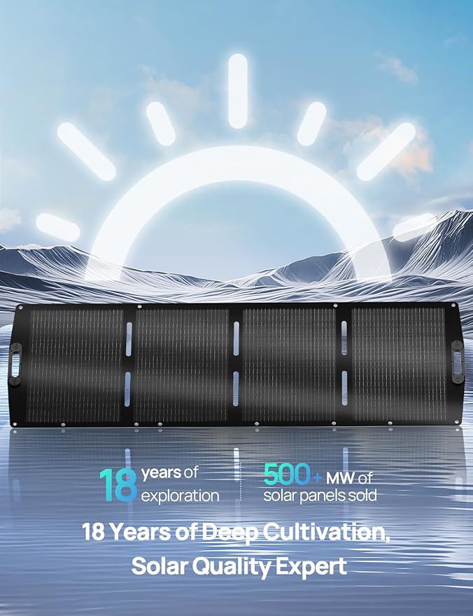 - Expandable Power System: The 200W poatable soalr panel supports series/parallel connections to combine multiple panels, flexibly scaling power output for higher energy demands
