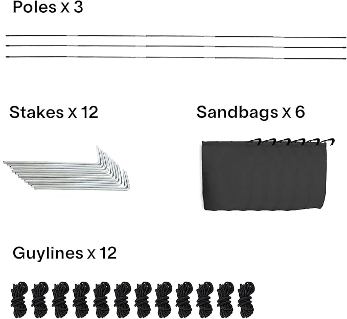 - Steadfast Stability: Worried about windy conditions? Rest easy with the included 6 elongated sandbags, 12 guylines, and 12 metal mounting stakes. These essential accessories ensure your tent remains steadfast in diverse weather conditions, so you can focus on enjoying the great outdoors. Floor (ASIN B07P2D24N6) is optional purchase choice, it can be a floor for this outdoor tent. Our String Lights LED (B08CRD646V) is ideal for adding some sparkle to this tent.