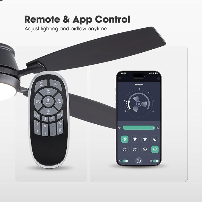 - 【Efficient 6-Speed Fan with Smart Controls】Choose from 6 adjustable speeds to suit your comfort. Easily control 52 inch ceiling fan with light using the included remote or our user-friendly app.