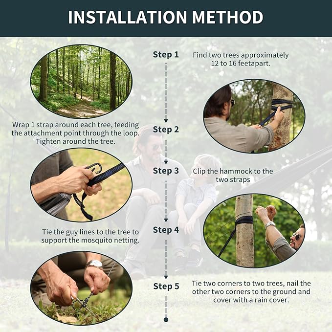 - 【PACKAGE & QUALITY SERVICE】Outdoor hammock comes with 2 tree straps(18 adjustment loops + 20 ft long combined), 2 heavy duty carabiners, 2 elastic ropes and 2 sand pegs. We take pride in top quality products and great customer service.