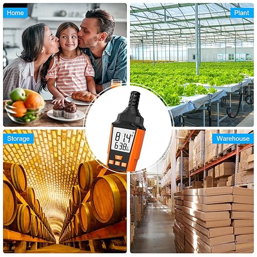 - WIDELY APPLICABLE SCENES - The digital temperature humidity gauge can be used for a high range of applications to know changes in environmental information in real-time, such as HVAC, industry, agriculture, meteorology, medicine, laboratory, daily life, warehouse management, paranormal investigator, wine cellar, machine room, greenhouse, data storeroom, food hygiene, etc.