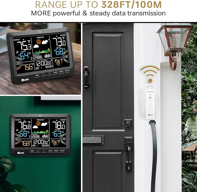 - 328FT Range, up to 3 Sensors - More powerful steady data transmission, accurate temperature and humidity monitor is crucial to seniors and kids. Humidity accuracy: ±5%, Temp Accuracy: ±1.8°F. For more outdoor sensor, order them separately (B0DM7SQC4M from U UNNI).