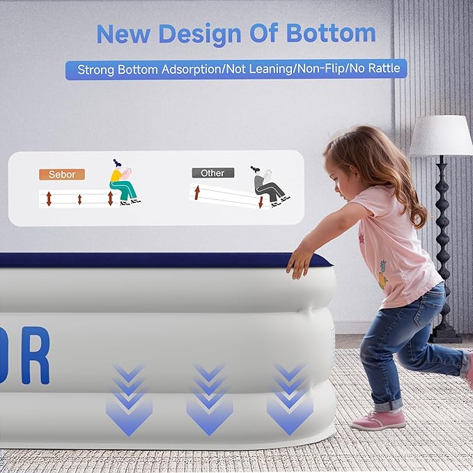 - Patented Structure Design & Strong Support: Covered By U.S.(Patent NO.: US 12,108,880 B2). Constructed from a new, tough PVC material formula, the Sebor air mattress is built to last. With Unique patented design of Internal Construction can withstand more weight and pressure without losing its comfort or stability, providing you with reliable support and restful sleep every time.