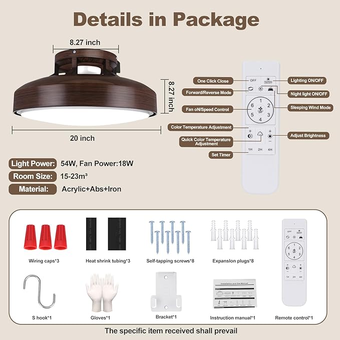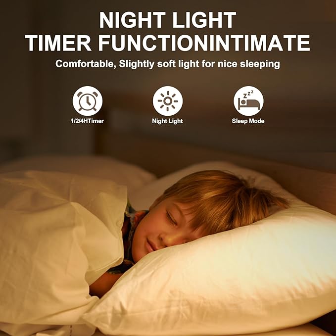 - Effortless Remote Management: Adjust fan speed, light brightness, and 60° oscillation angle via remote, plus set 1/2/4-hour auto-off timers.
