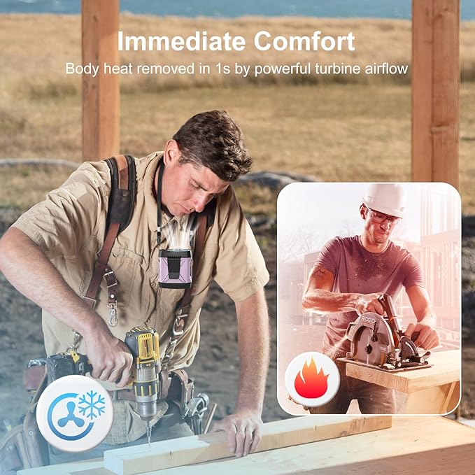 - 4-in-1 Portable Waist Fan : More than just a portable fan, this versatile portable fan functions as a waistband fan, under shirt fan, desktop fan, and handheld fan. Equipped with a detachable lanyard and clip, this body fan under shirt keeps you cool anytime, whether at work, outdoors, or during summer activities.
