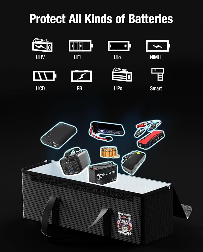 - 【Durable & Multi-Purpose Use】Beyond batteries, this explosion-proof lithium battery storage box bag doubles as a fireproof safe for documents, tools, or emergency gear. Rip-proof stitching + rugged construction ensures long-term reliability—built to last a lifetime