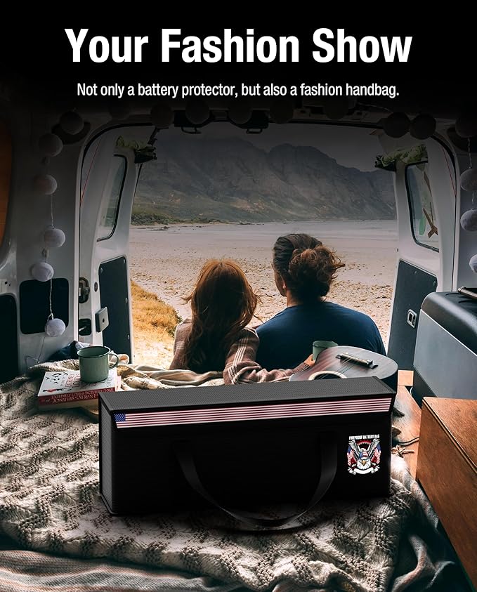 - 【Worry-Free Charging & Travel Safe】Waterproof, dustproof, and radiation-shielded to extend battery life. Fire-resistant inner lining prevents battery combustion during chargins. Ideal for air travel and perfect for camping, RVs, and home storage