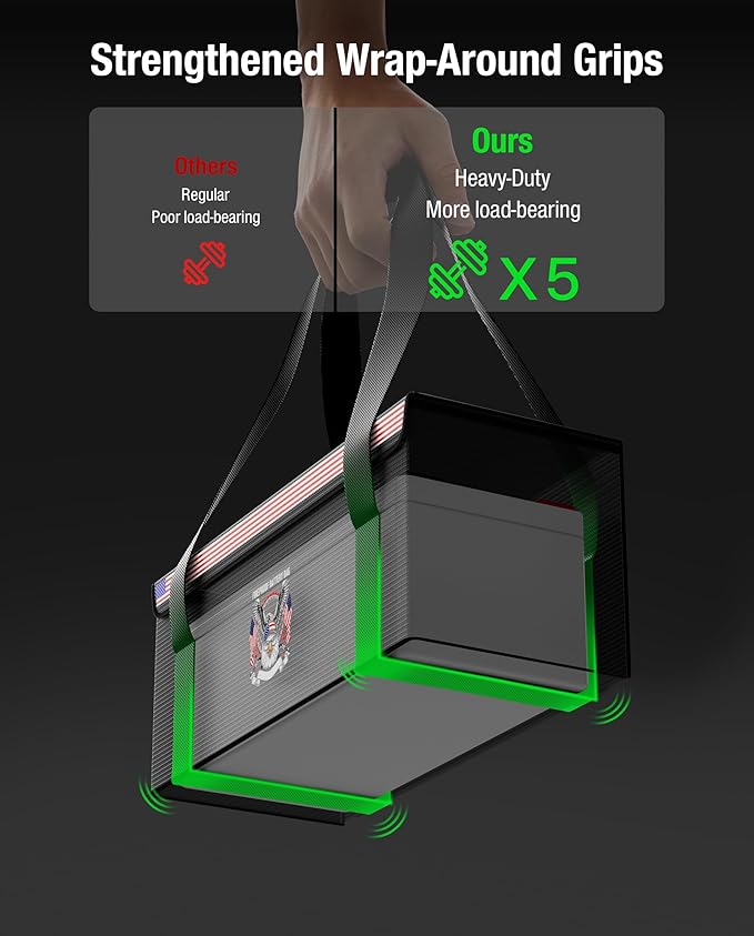 - 【Durable & Multi-Purpose Use】Beyond batteries, this explosion-proof lithium battery storage box bag doubles as a fireproof safe for documents, tools, or emergency gear. Rip-proof stitching + rugged construction ensures long-term reliability—built to last a lifetime