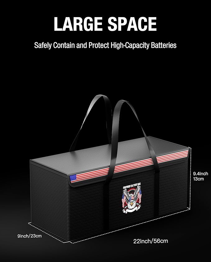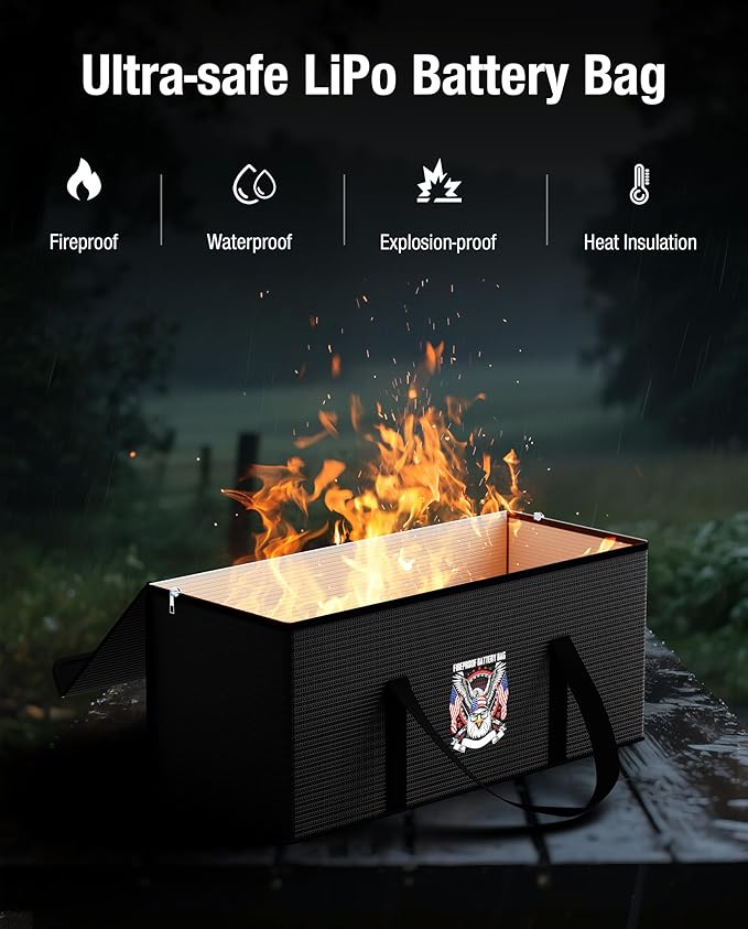 - 【Fireproof & Explosion-Proof Safety】Crafted from fireproof fiberglass, liquid silicone, and non-woven insulation, our lipo battery bag withstands extreme heat up to 3000°F—ensuring safe charging, storage, and transport for lithium-ion/LiFePO4 batteries. Prevents explosions, fires, and thermal runaway, while also protecting valuables like documents, jewelry, and electronics