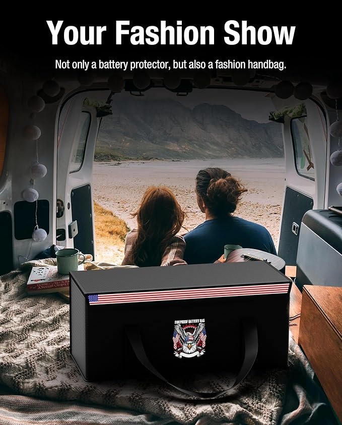 - 【Worry-Free Charging & Travel Safe】Waterproof, dustproof, and radiation-shielded to extend battery life. Fire-resistant inner lining prevents battery combustion during chargins. Ideal for air travel and perfect for camping, RVs, and home storage