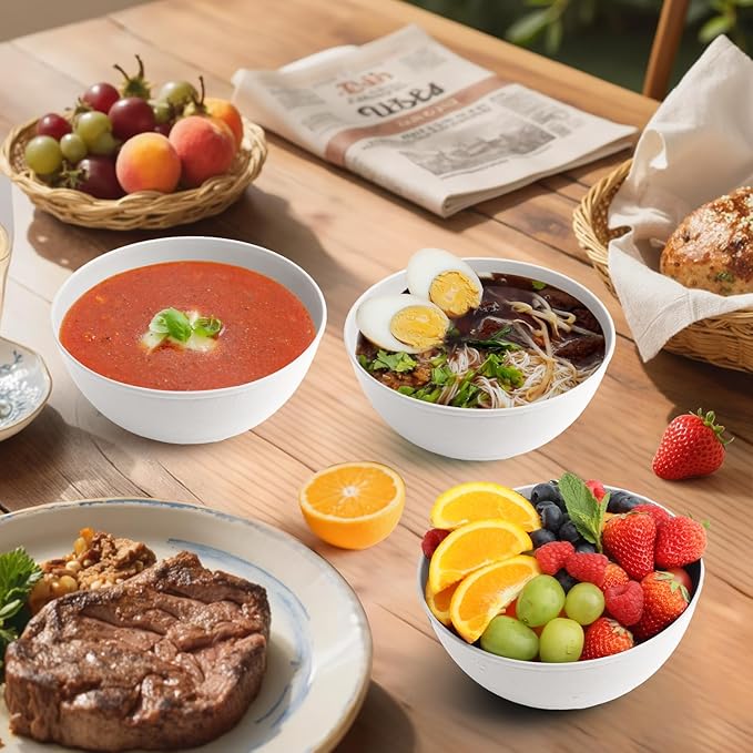 - VERSATILE & IDEAL FOR ALL OCCASIONS: The versatile addition to your kitchen! These large bowls for eating (40 oz) are perfect for salads, cereals, noodles, diinner, popcorn, and more. Ideal soup bowls, salad bowls, cereal bowls, plastic soup bowls, or plastic salad bowls for everyday use, parties, RVs, picnics, camping, and holiday