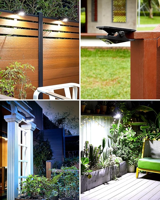 - Versatile Clip & Mounting: Install effortlessly with the sturdy clip, hook, or screw options—no drilling required! Perfect as solar motion lights outdoor for fences, patios, gutters, walkways, or camping trips