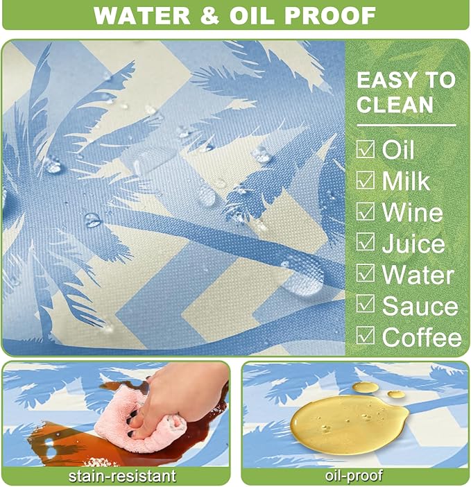 - Oil and Water Proof: Crafted from high-quality polyester, ensures no spills or stains soak in and easy to clean - just wipe it down with a damp cloth, and it's good as new. The material is also colorfast, wrinkle resistant and wear resistant, and whether used indoors or outdoors, this tablecloth will ensure that your table will still look vibrant after multiple uses