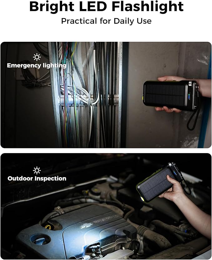 - [Unique design in the power bank market]This portable charger power bank is equipped with emergency radio and a bright flashlight.A very practical outdoor emergency tool specially designed by GOODaaa team,ensuring you can enjoy favorite radio stations or stay informed with the latest news,while also providing illumination to keep you away from darkness.