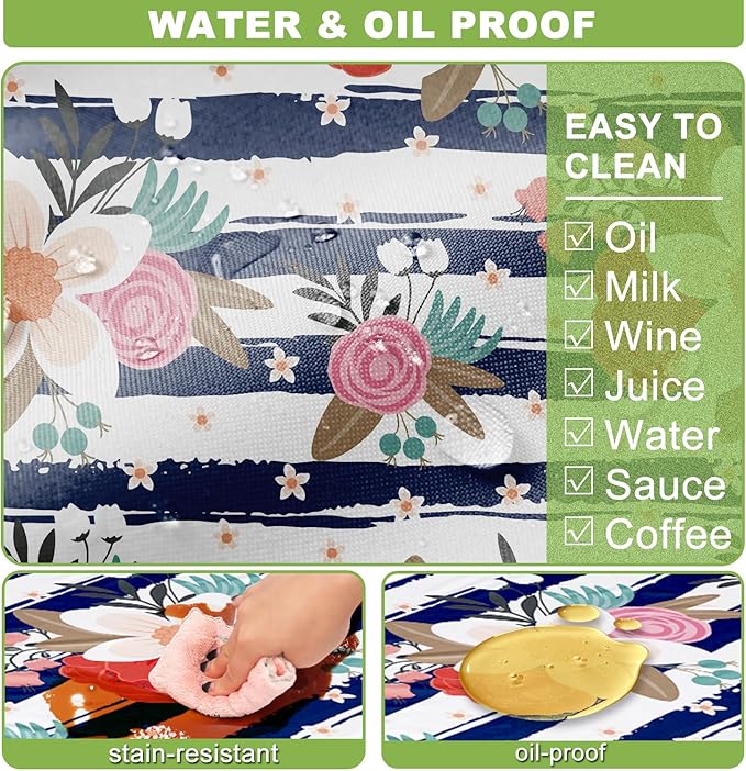- Oil and Water Proof: Crafted from high-quality polyester, ensures no spills or stains soak in and easy to clean - just wipe it down with a damp cloth, and it's good as new. The material is also colorfast, wrinkle resistant and wear resistant, and whether used indoors or outdoors, this tablecloth will ensure that your table will still look vibrant after multiple uses