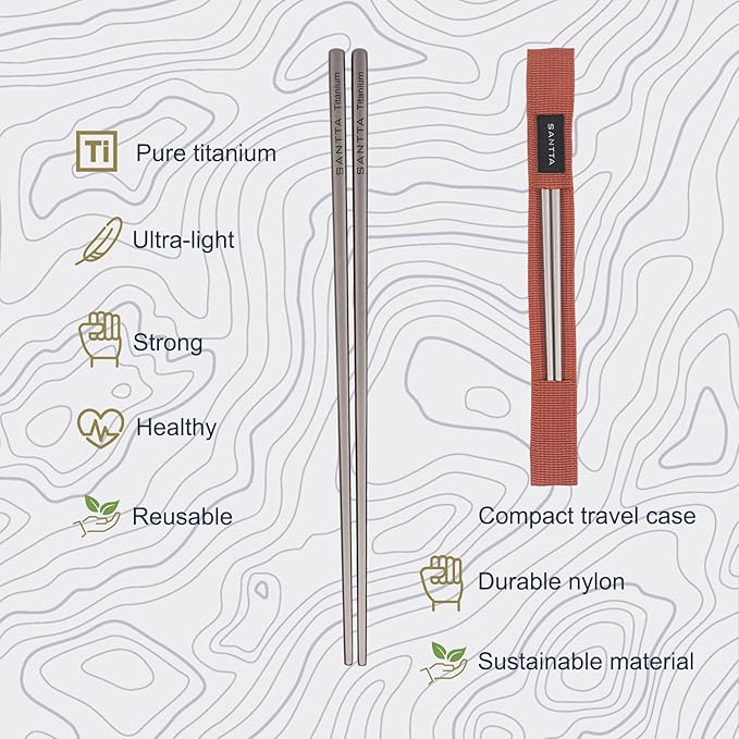 - SUSTAINABLE CHOICE: Save Trees! Say No to Disposable Items! Embrace a sustainable lifestyle! SANTTA titanium reusable and strong titanium chopsticks are not only long-lasting but also contribute to reducing single-use waste, making them an eco-conscious choice for mindful consumers.