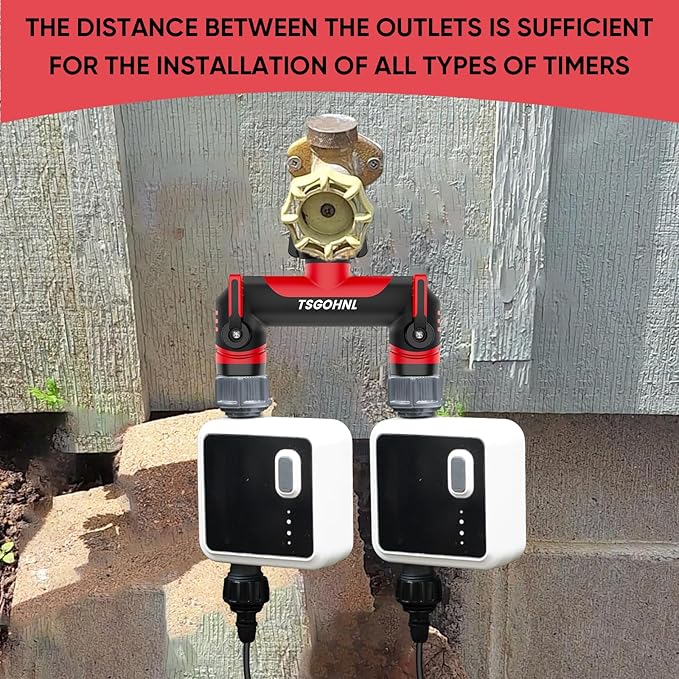 - 2: It is designed to install multiple garden irrigation system timers or large timers at the same time, we extend the spout spacing to 2 inches; both male and female teeth are made of metal.