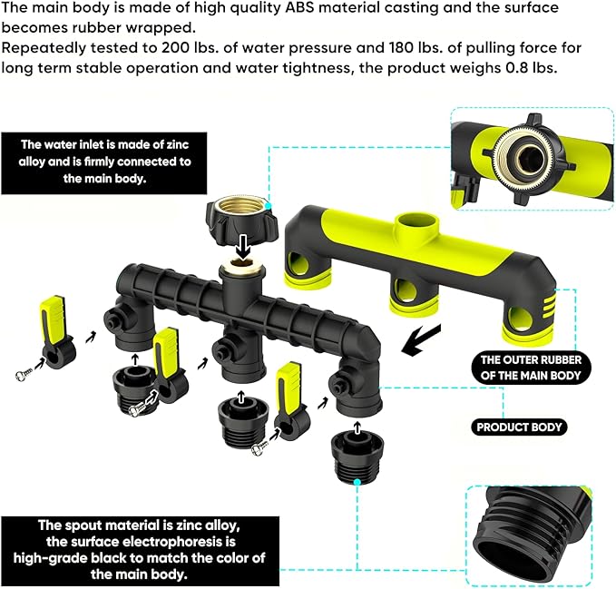 Garden Hose Splitter, 3/4-Inch Hose Manifold, Outdoor Faucet Adapter - Soft TPR Covering - Lightweight Non-Slip Sun-Resistant 3-Way Valve(green)