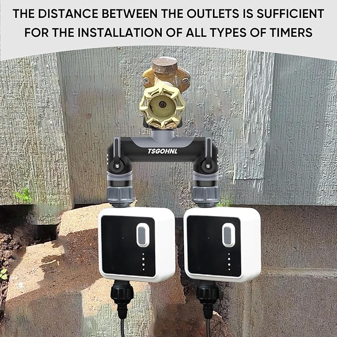 - 2: It is designed to install multiple garden irrigation system timers or large timers at the same time, we extend the spout spacing to 2 inches; both male and female teeth are made of metal.