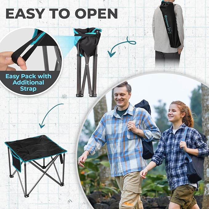 - Compact & Foldable for Easy Storage: This camping stool features a convenient folding design, making it incredibly easy to store and carry. Whether you're heading to the campsite, park, or beach, simply fold it up and pack it in the included carry bag for hassle-free transportation.