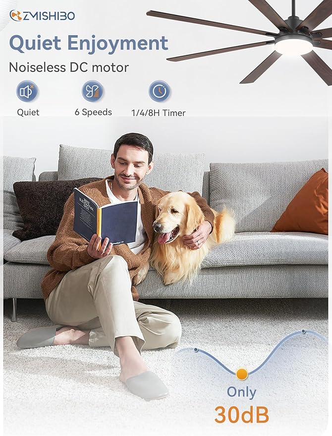 - Large ceiling fan: This 80-inch large fan is designed to meet the needs of spacious areas. Our black ceiling fan comes with dual-sided blades in black and walnut colors. You can choose different colored blades based on your home style and holidays. Equipped with 6/12/20-inch downrods, this ceiling fan is suitable for high ceilings and low ceilings. Additionally, this fan supports installation on a 15° sloped ceiling.
