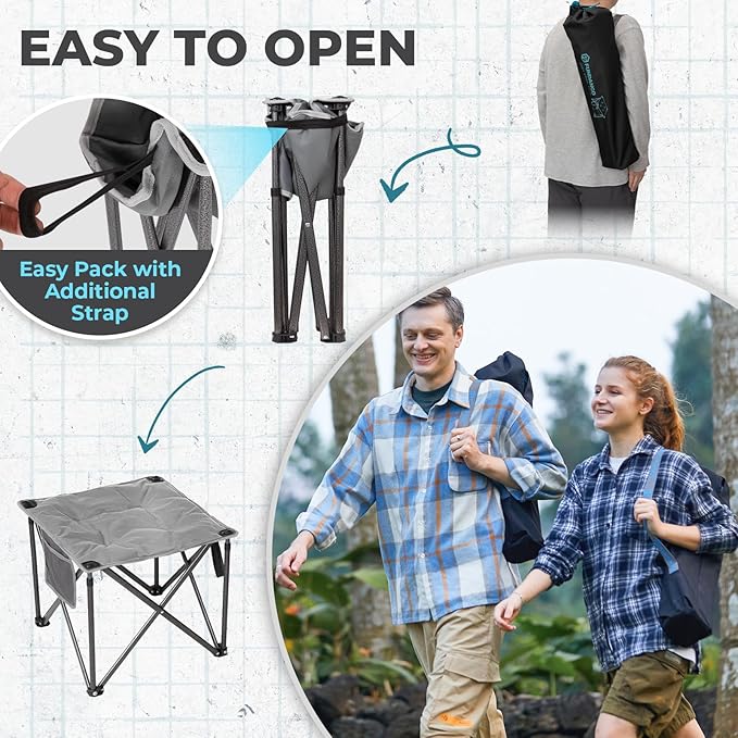 - Compact & Foldable for Easy Storage: This camping stool features a convenient folding design, making it incredibly easy to store and carry. Whether you're heading to the campsite, park, or beach, simply fold it up and pack it in the included carry bag for hassle-free transportation.