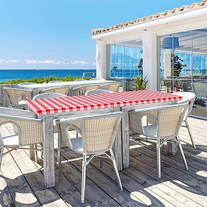 - Snug Elastic Edge Design – Stretchy hem ensures a tight, slip-free fit on any table shape. No more pulling, sliding, or tripping—stays firmly in place even in strong winds